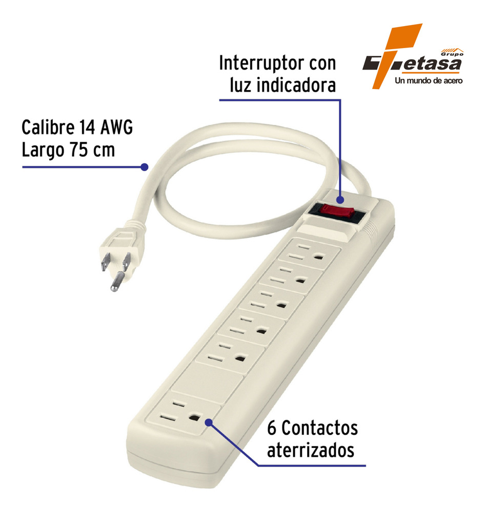 Multicontacto 16 AWG uso rudo con 6