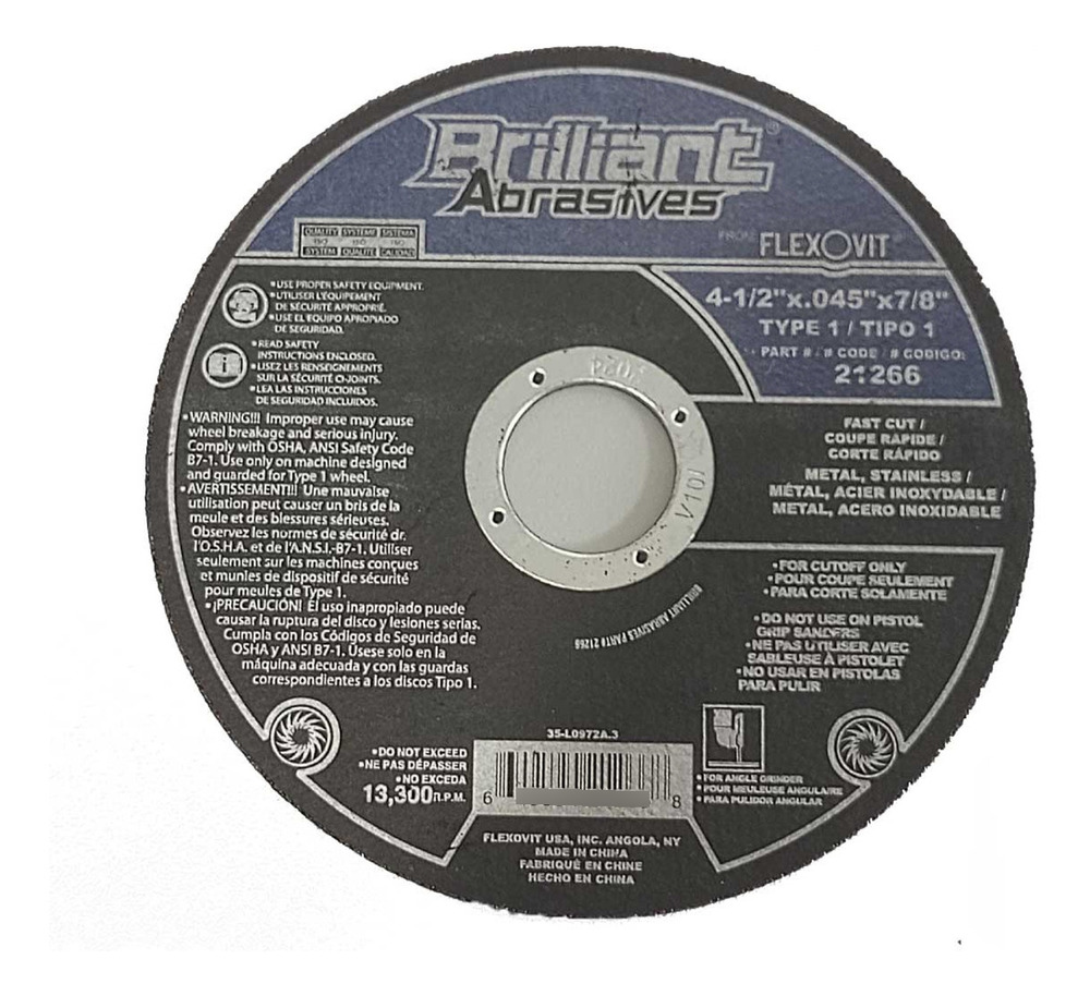 Disco t-27 desbaste 4-1/2″ x 1/4″ x 7/8″ inox. Brilliant