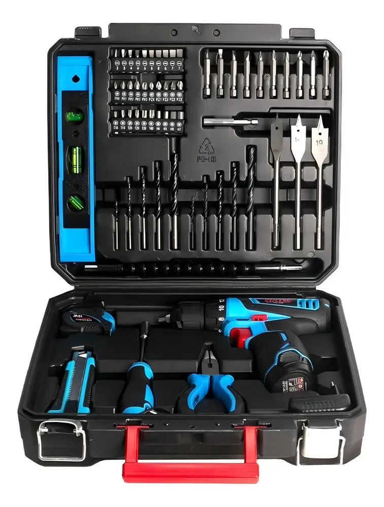 Kit Taladro Inalámbrico con 60 Accesorios Calidad Fixtec Color Azul