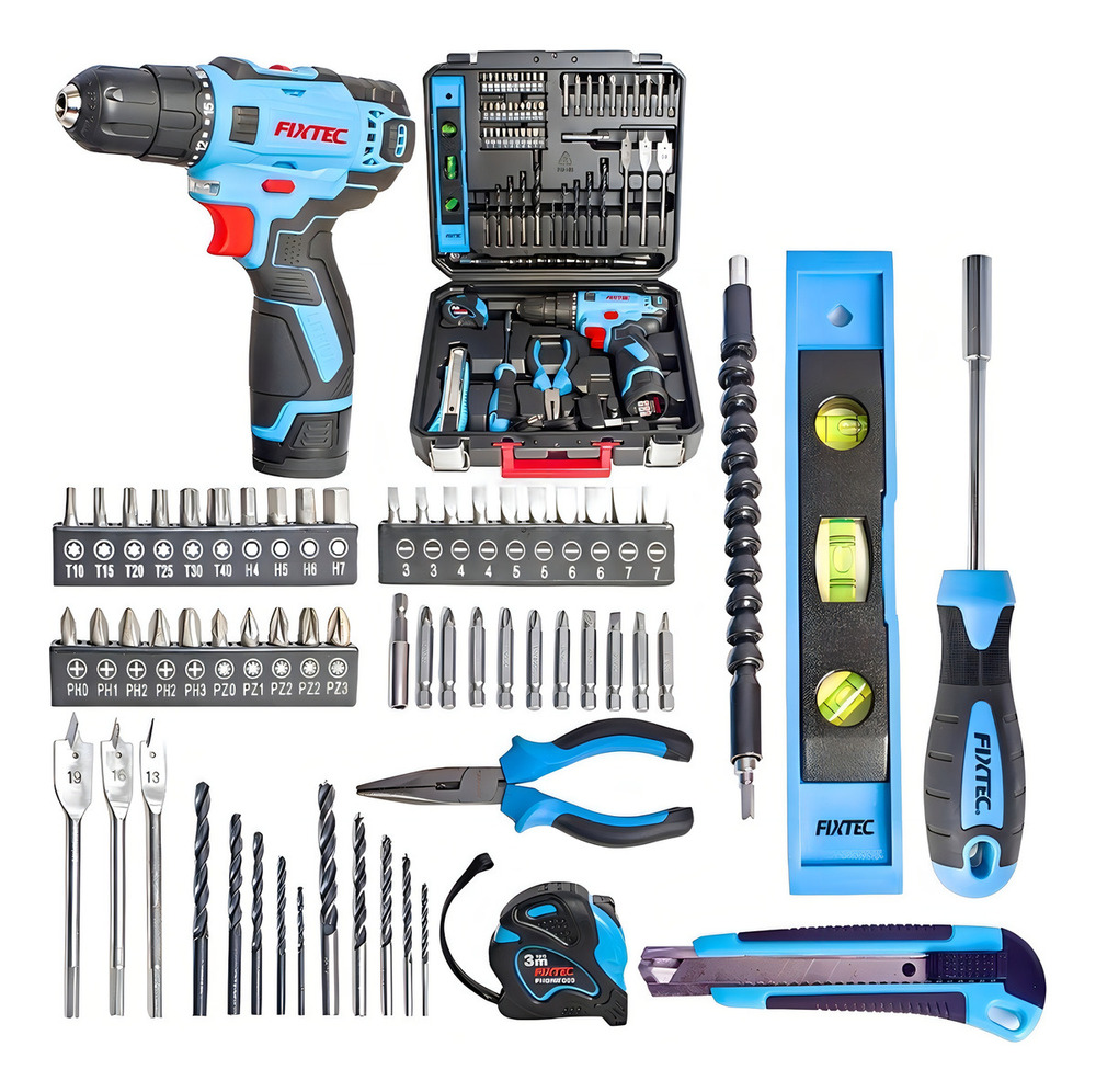 FIXTEC TOOLS presenta un kit de taladro inalámbrico de alta calidad con 60 accesorios.