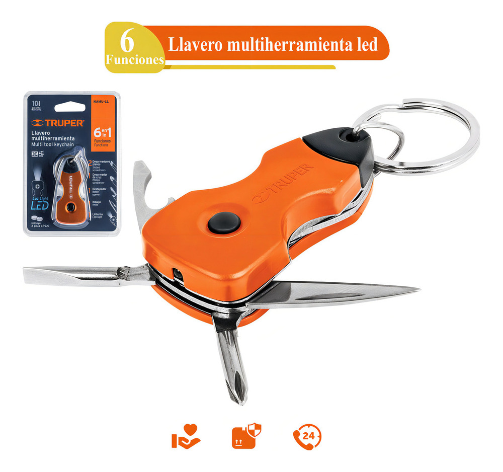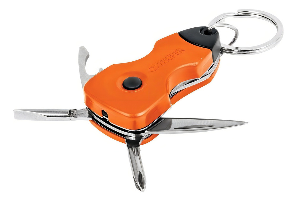 La Multiherramienta con Led Tipo Llavero de Truper es el accesorio perfecto para aquellos que buscan practicidad y versatilidad en una sola herramienta. Con su diseño compacto y color naranja llamativo, esta multiherramienta se convertirá en tu compañera ideal para cualquier ocasión.