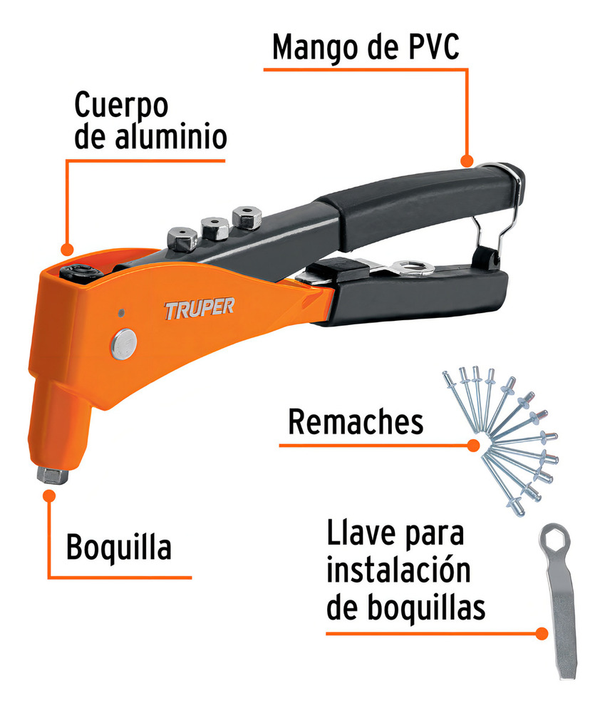 • Diseñada para proporcionar una gran fuerza al remachar